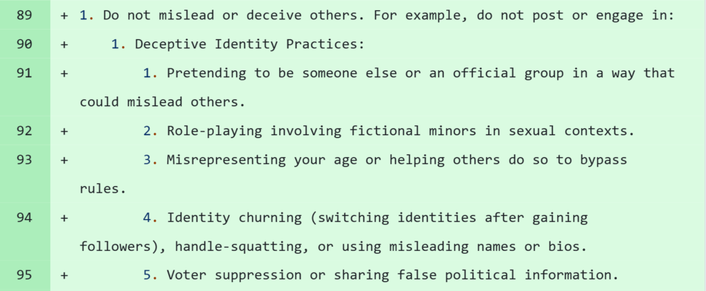 On August 14, 2025, Bluesky published an overhaul of its Community Guidelines, introducing more granular categories and detailed examples of prohibited content. The changes include (among others) additional explicit bans on: