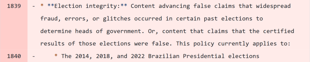 On 28.08.2025 Youtube updated its Community Guidelines, removing the ban on content that claims election fraud, as well as all examples referring to the Brazilian presidential elections.